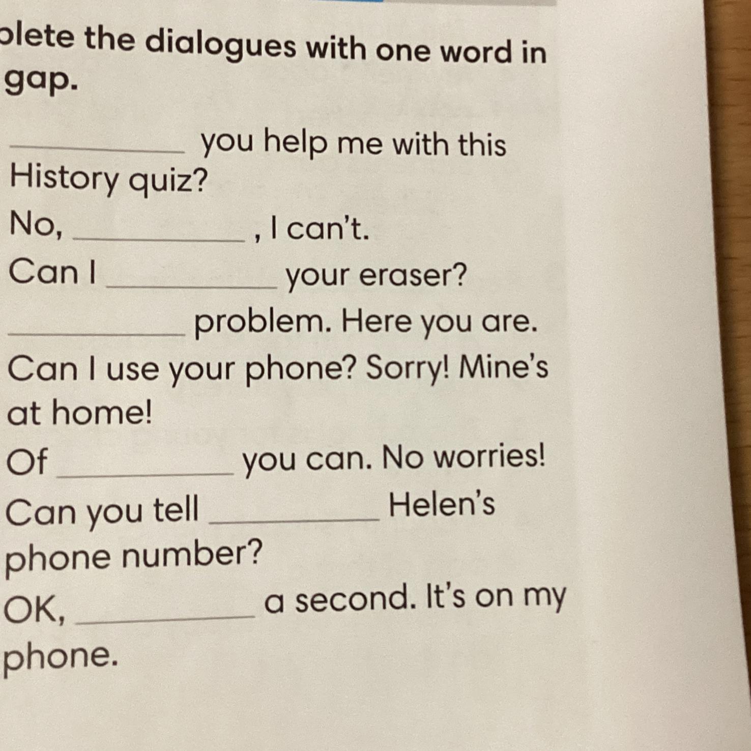 1.Can, sorry 2.take, no 3. course 4.me, wait