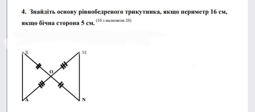 Основание равнобедренного тр-ка с боковыми сторонами по 5 см, и периметром 16см равна периметр минус сумма боковых сторон, то есть, 16 - (5 + 5) = 6 см.