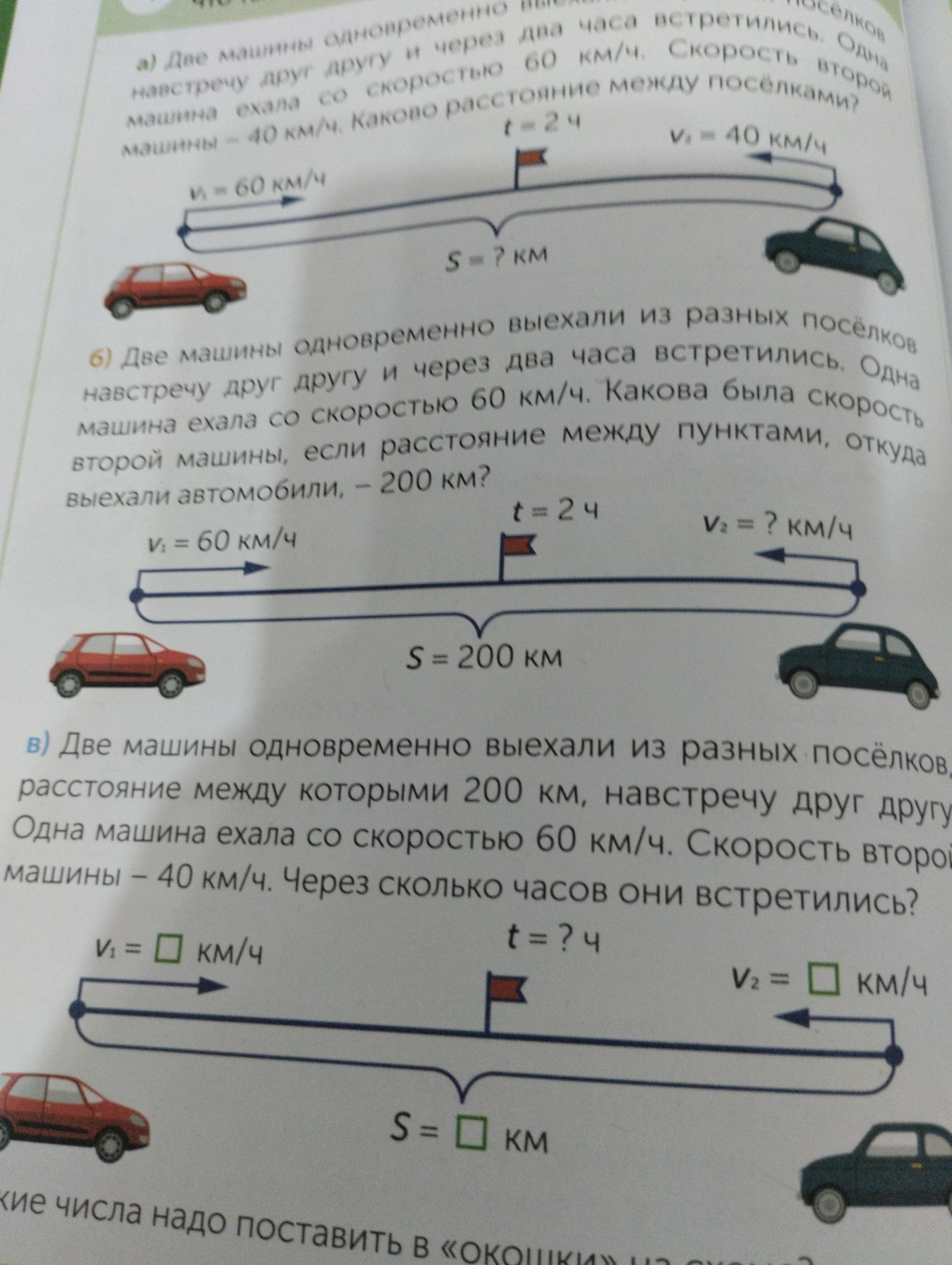 а не движется навстречу друг другу, одинаковое время 2ч,одинаковое расстояние 200 км, они движутся с одинаковой скоростью красная машина 60 км/ч чёрная машина 40 км/ч.