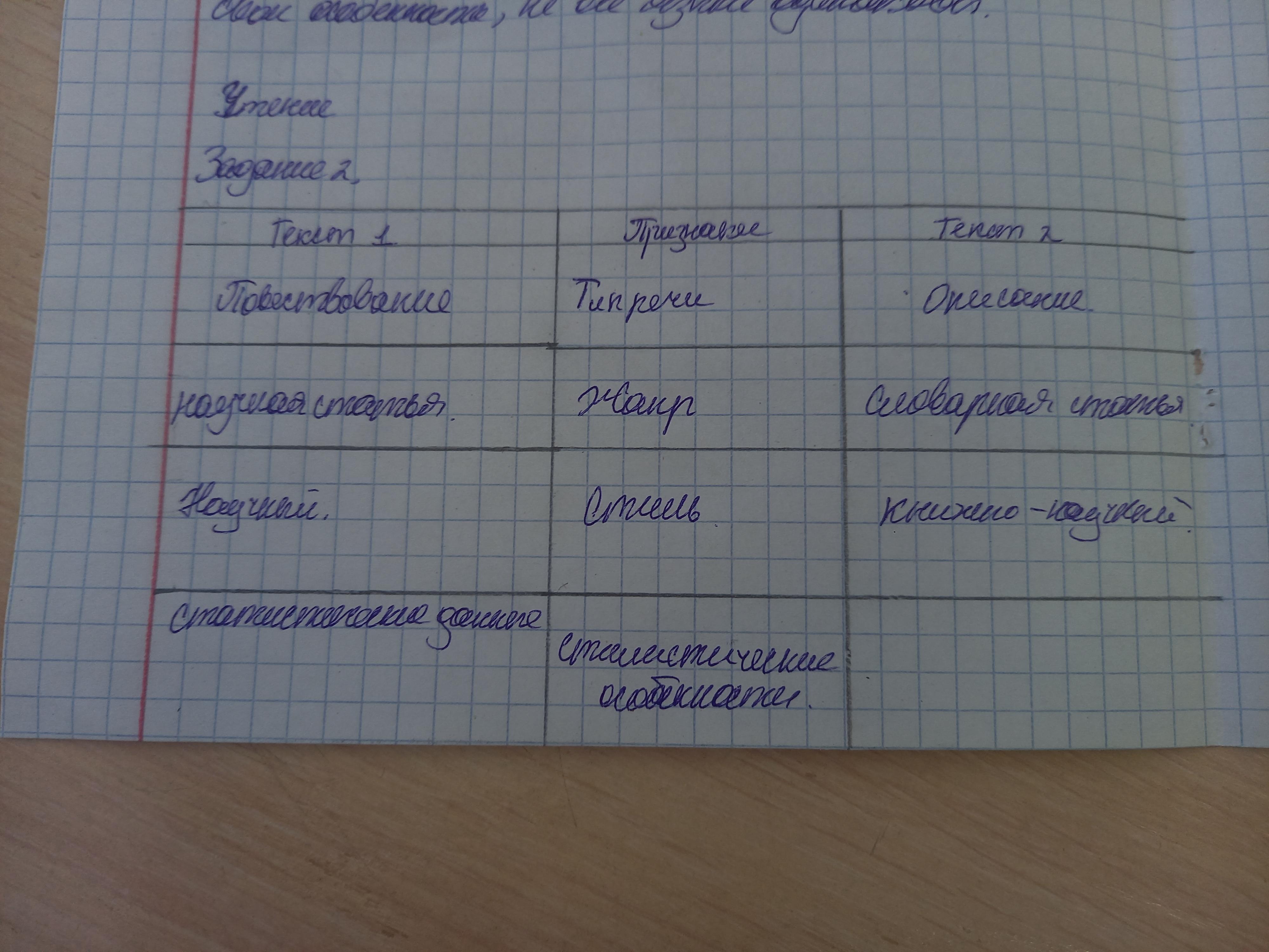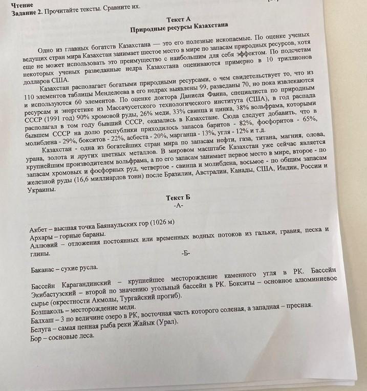 1) Заполните таблицу: Текст 1 Признаки Тип речи (26) Жанр (26) Стиль (26) Текст 2 Стилистические особенности (26) 2) Запишите идеи рационального использования природных ресурсов в Казахстане (2 б)