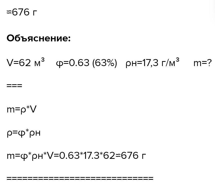 Определи массу паров воды в воздухе первого зала объёмом 56м³ при температуре воздуха 25⁰с и относительной влажности 63% плотность насыщенного пара равна 17,3 г/м³