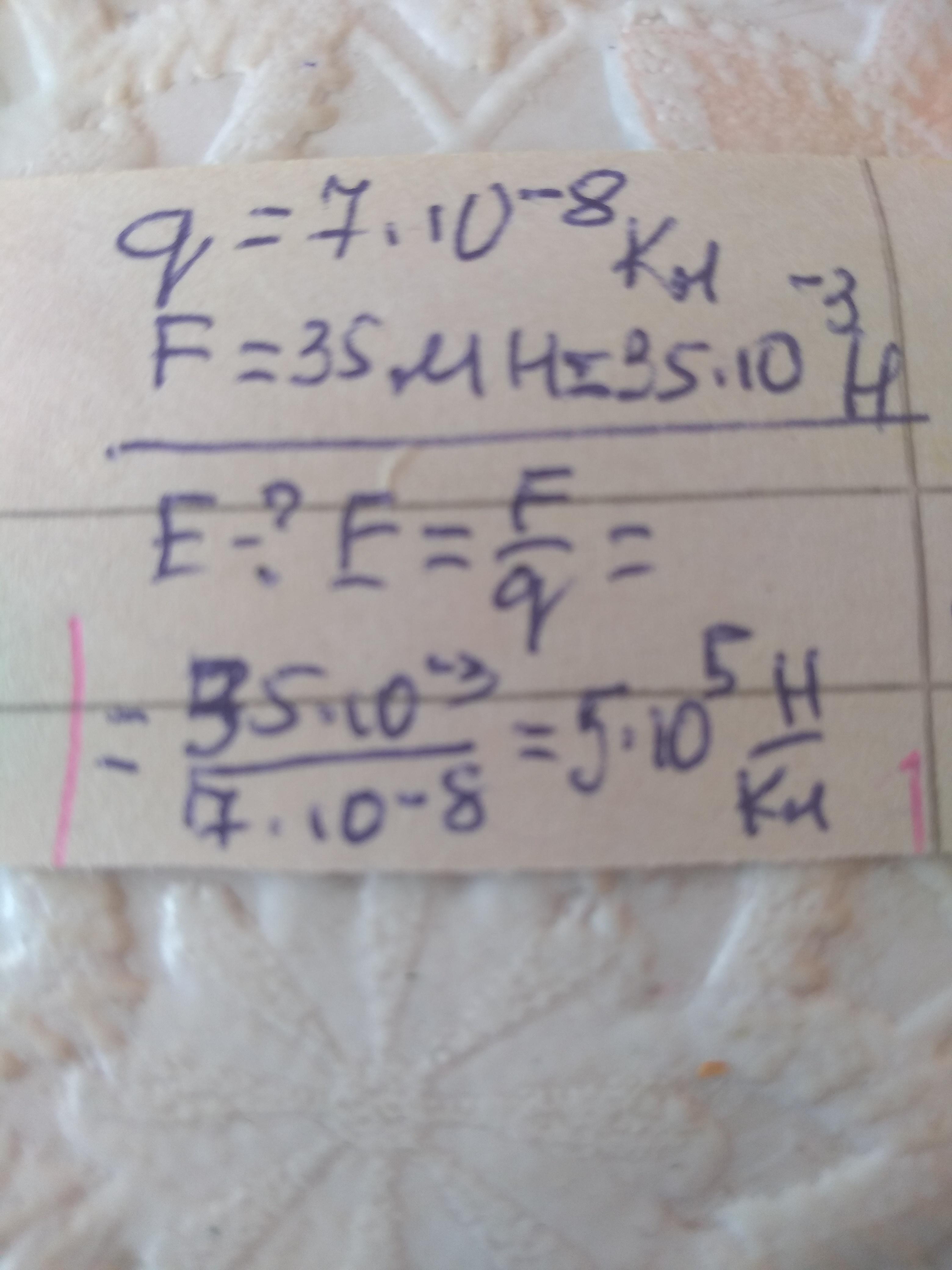 действия на заряд 7 · 10^-8Кл равна 35мН.