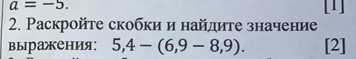 5,4 - (6,9 - 8,9) = 5,4 - (-2) = 5,4 + 2 = 7,4