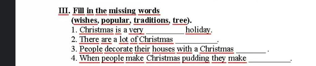 1- popular, 2-traditions, 3-tree, 4- wishes