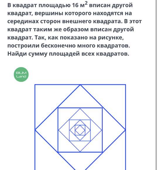 квадрат. Так, как показано на рисунке Найди сумму площадей всех квадратов