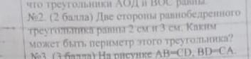P=2+2+3=7см потому что там конкретно сказано что 2 стороны 2см 3 сторона треугольника всегда будет большой в данном случае 3см