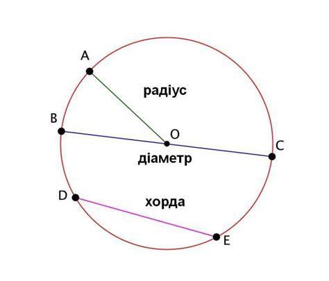 б) Діаметр кола — найдовша хорда. За величиною діаметр дорівнює двом радіусам.
