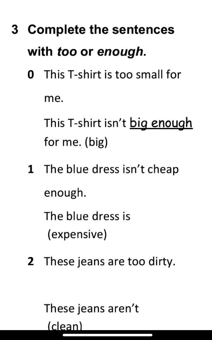 1) The blue dress is too expensive.