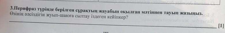 3.Перифраз түрінде берілген сұрақтың жауабын оқылған мәтіннен тауып жазыңыз. Өзінің әлсіздігін жуып-шаюға сылтау iздеген кейiпкер? ESDH [1]