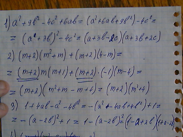 1) = (а²+6ав+9в²)-4с²=(а+3в)²- (2с)²=(а+3в+2с)(а+3в-2с)