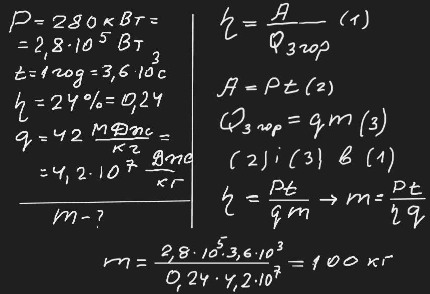 Двигун трактора має потужність 280 кВт. Визначити масу дизельного палива двигуна за годину, якщо ККД двигуна становить 24 %. Кому нодо сотку на халяву