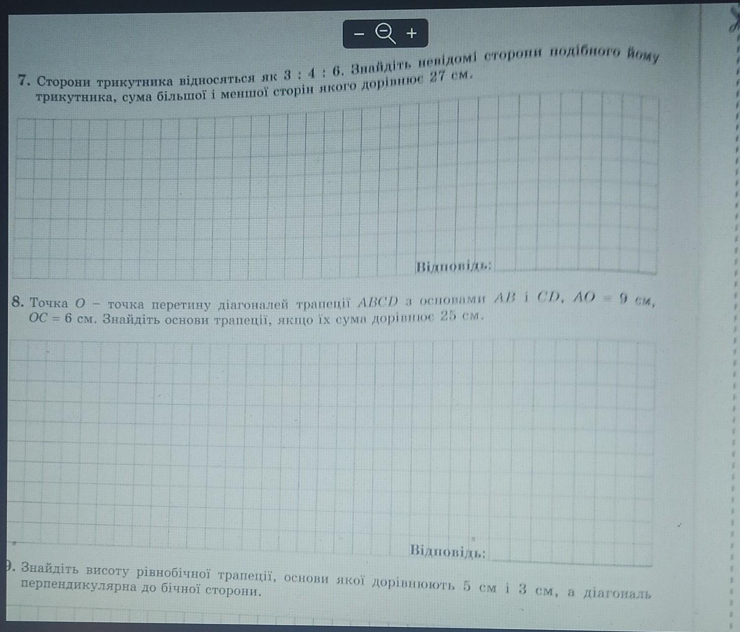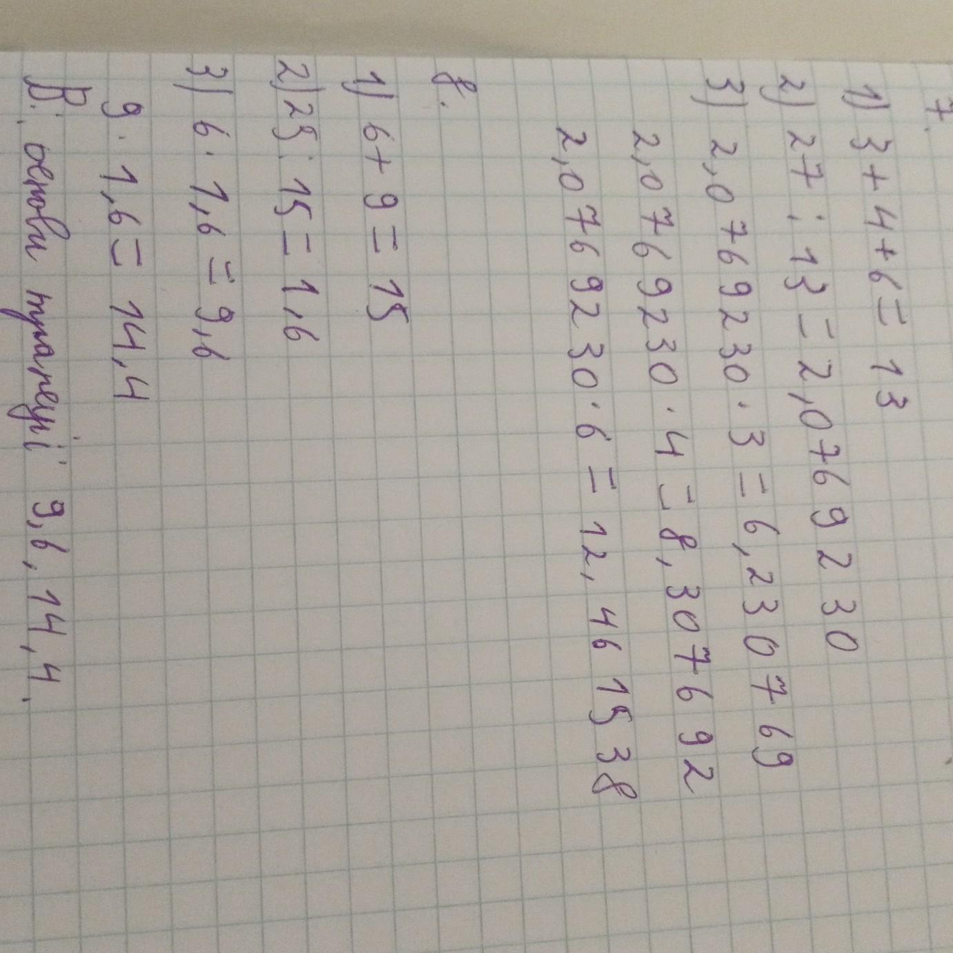 7. 6,230769 8,307692 12,461538 8. основи трапеції 9,6 14,4