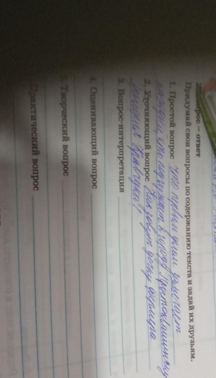 вопрос-ответ Придумай свой вопрос и по содержанию текста и задай их друзьям простой вопрос уточняющий вопрос вопрос не интерпретация оценивающий вопрос творческий пжжж