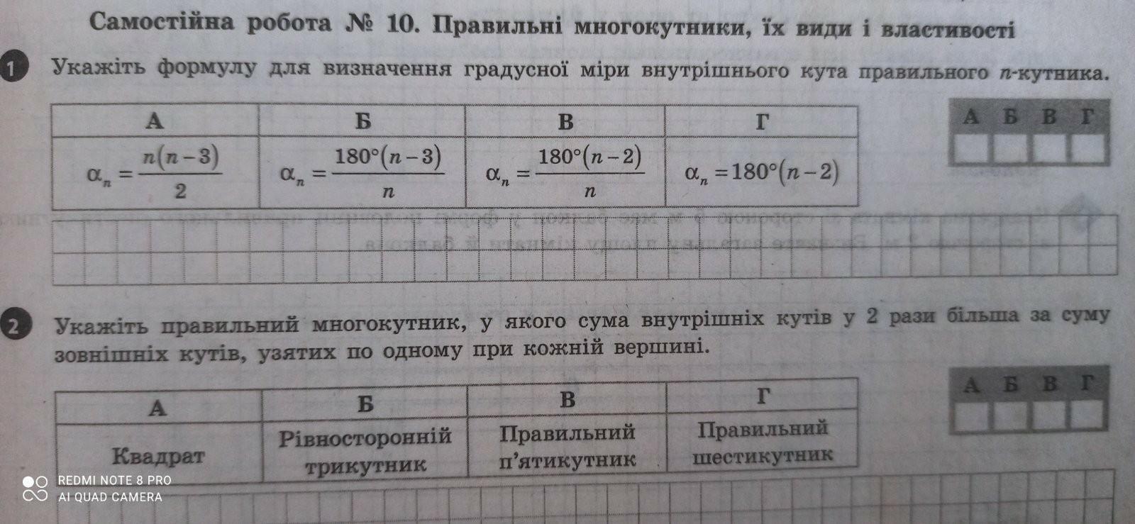 2 Г сумма внутрішніх кутів 180(п-2), сумма зовнішніх завжди 360. Тоді отримуємо рівняння 180(п-2)=360*2