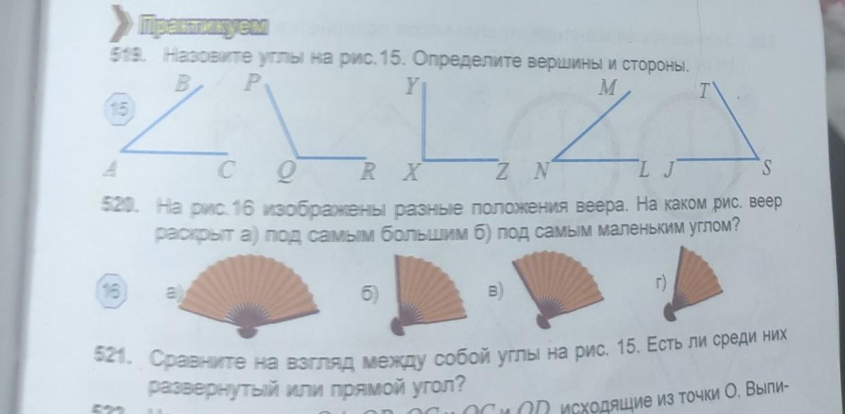521. Сравните на взгляд между собой углы на рис. 15. Есть ли среди них развернутый или прямой угол? помогите плис срочно