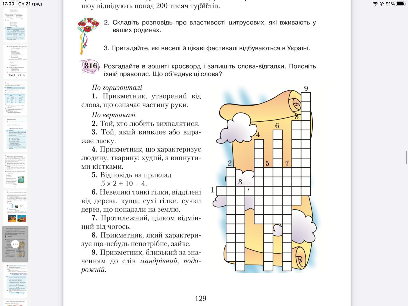(316) Розгадайте в зошиті кросворд і запишіть слова-відгадки. Поясніть