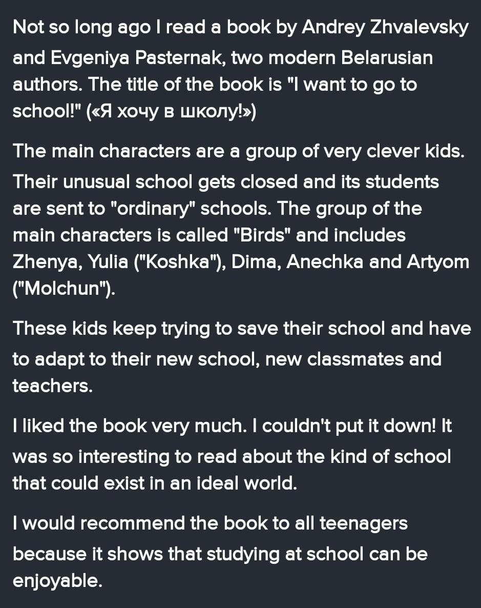 1)Anybody help you to choose your future profession? 2)Do you perfect the cinema or the theatre? Why? 3)Have you read any book recently. What type is it? 4)What is your favorite type of film? Why?