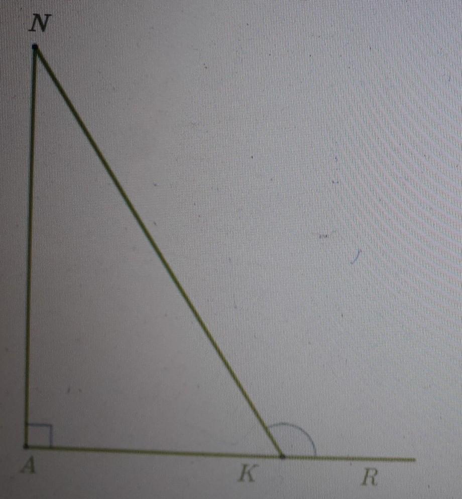 Дан прямоугольный треугольник АNK и внешний угол угла /_ K.