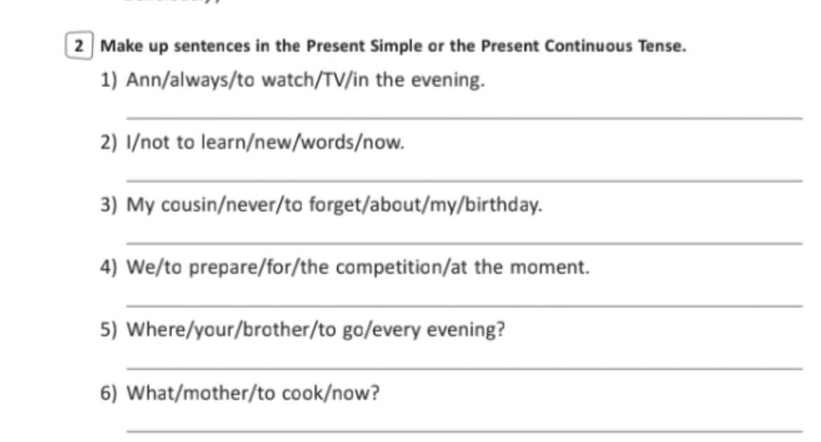 1. Ann always watches TV in the evening.