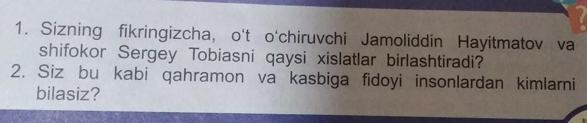 o'zbela bomi iltimos yordam bervorila tarbiya 6-sinf 59-betdigi savollaga javob bervorila pls