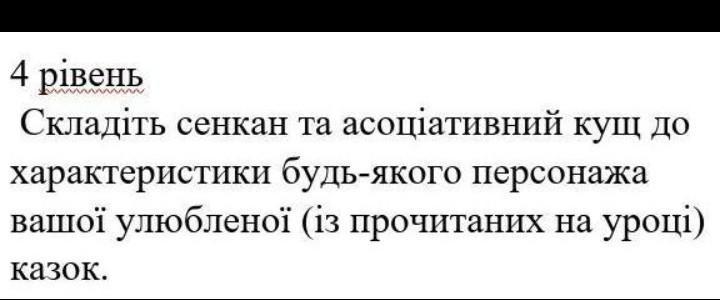 Складіть сенкан та асоціативний кущ до характеристики будь-якого персонажа вашої улюбленої із прочитаних на уроці казок.(казка:летючий корабель)