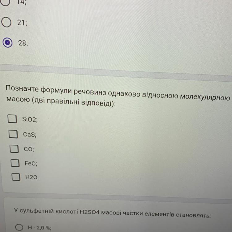 Ответ:брат SiO2 i H20 ОНИ ОДИНАКОВЫЕ 0=16 ЦЕЛЫХ А ТАМ ЦЫФРА 2 ЗНАЧИТ 32 И ТАМ И ТАМ ИДИ ОТВЕЧАЙ УДАЧИ