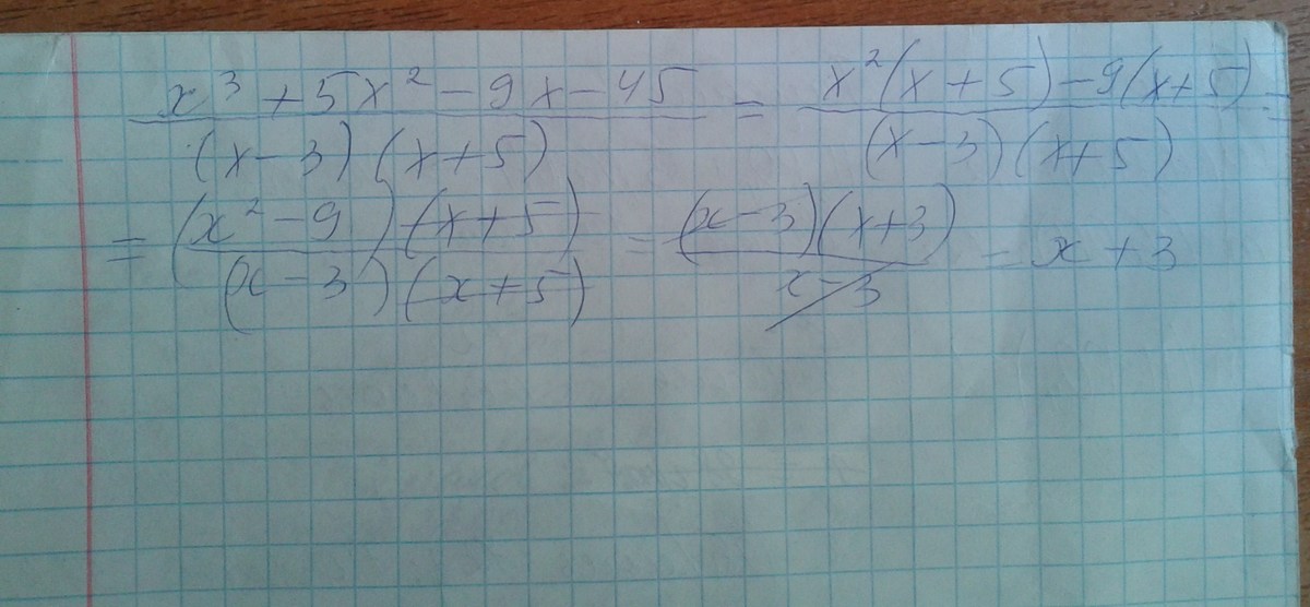 сократите дробь x3+5x2-9x-45/(x-3)(x+5)