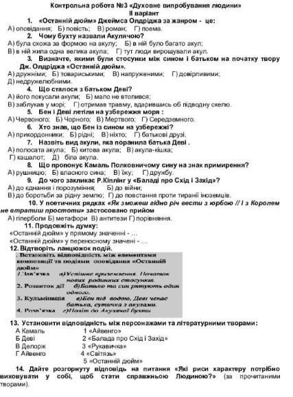 Допоможіть будь ласка це семестрова контрольна з зарубіжної літератури 2 варіант потрібно здати до завтра