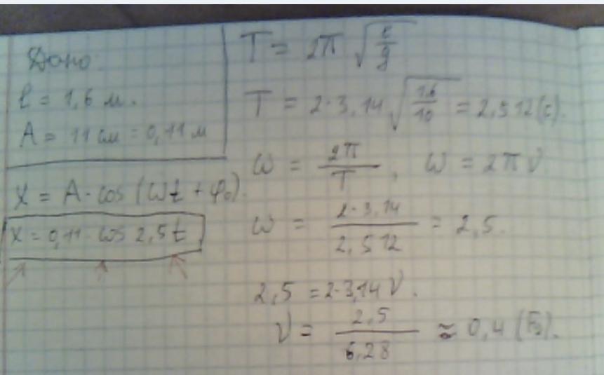 Записати рівняння коливань математичного маятника довжиною 1,6 м . амплітуда коливань якого 11см