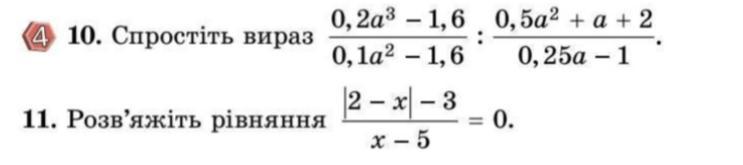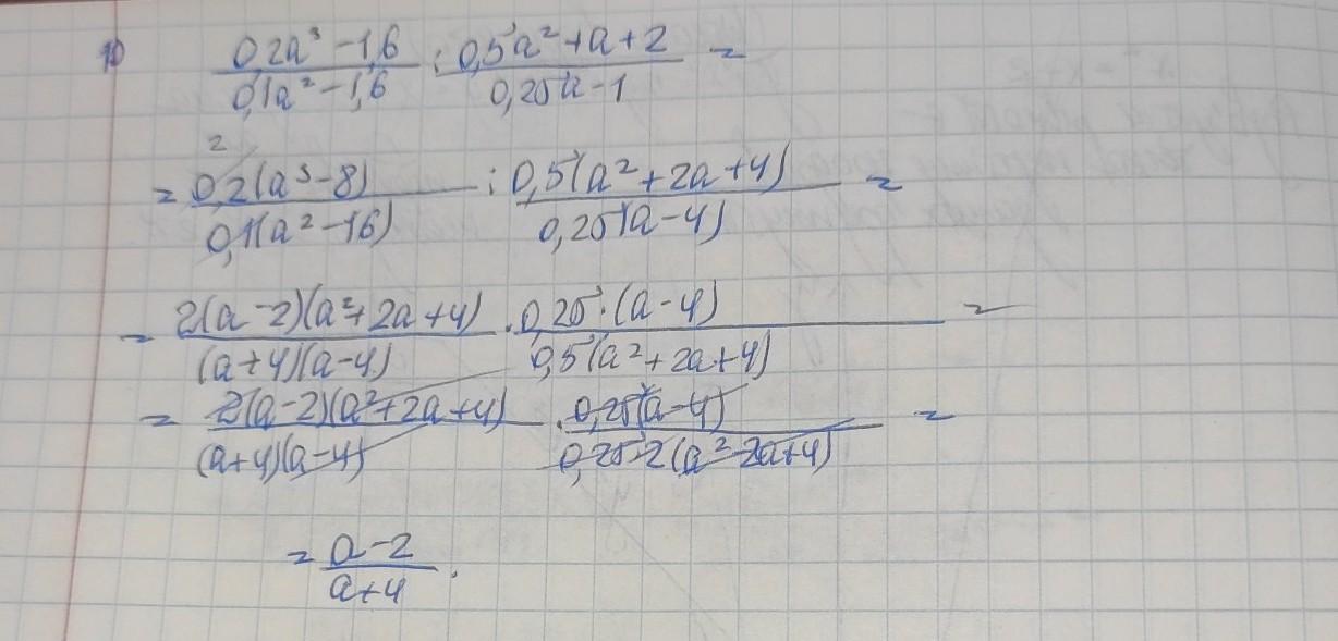10) Спростіть вираз 0,2а³-1,6/0,1а² -1,6:0,5а²+а+2/0,25а-1.
