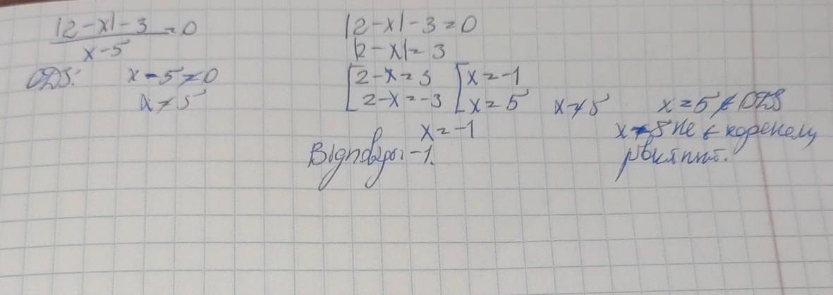 11) Розв'яжіть рівняння |2-х|-3/х-5=0