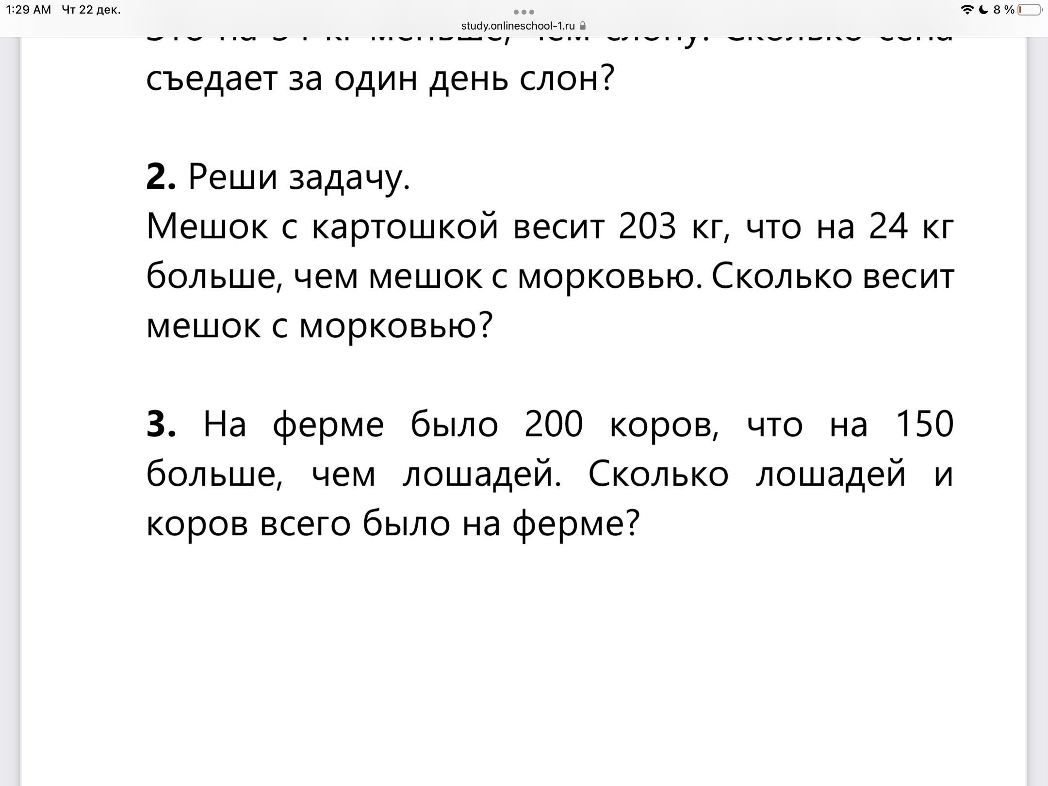 1). 203 + 24 = 227 (кг) - мешок с морковью.