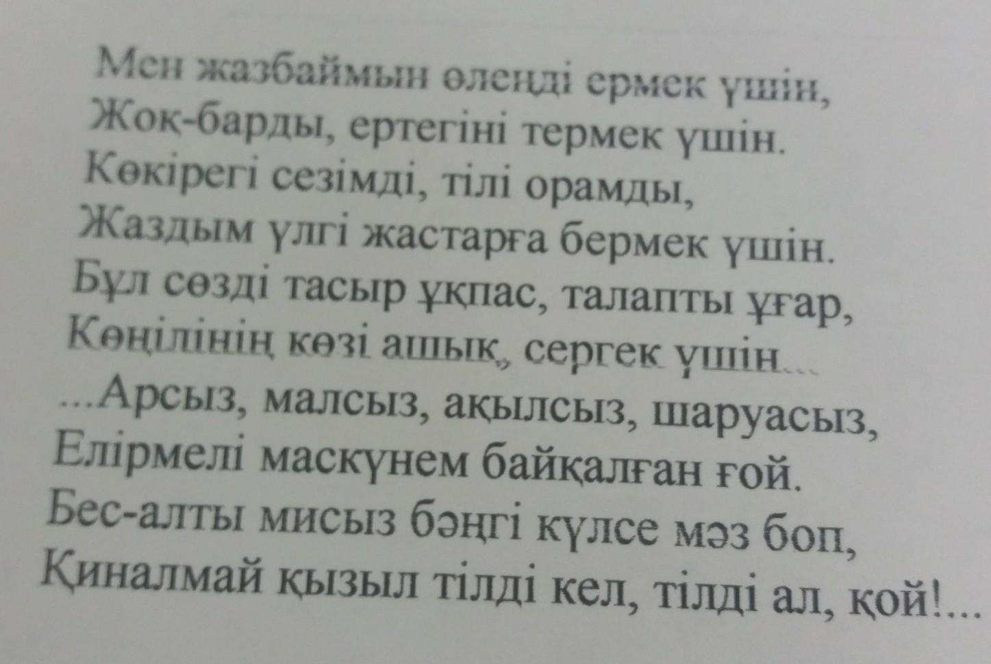 5. Өлең жолдарындағы көркемлегіш құралдарды (троптарды: Метафора, кейіптеу, метонимия, гипербола, литота аллегория, антитеза, градция, арнау) анықтап, астың сызыңыз