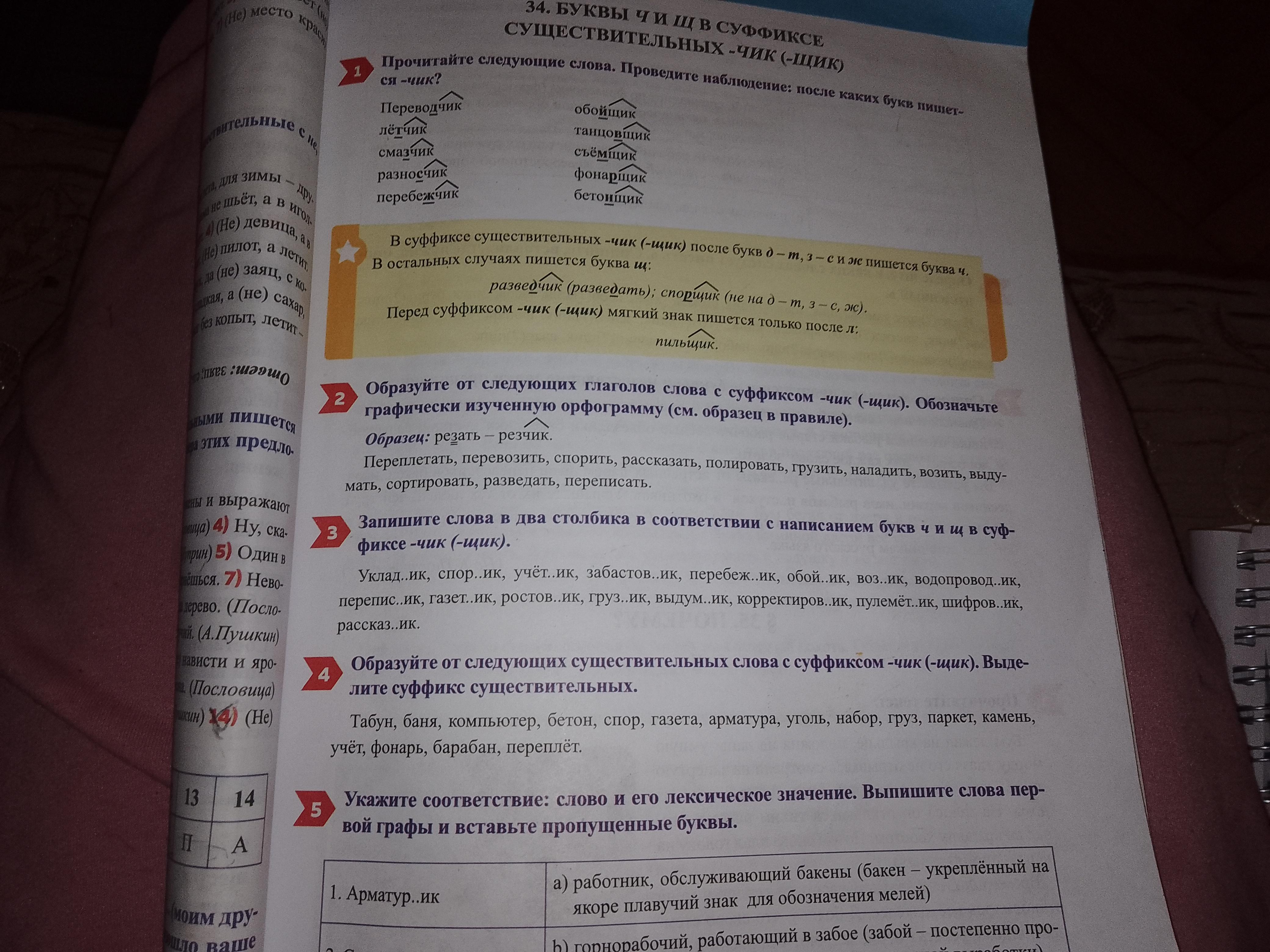 4. Образуйте от следующих существительных слова с суффиксом -чик-/-щик-. Выделите суффикс существительных.