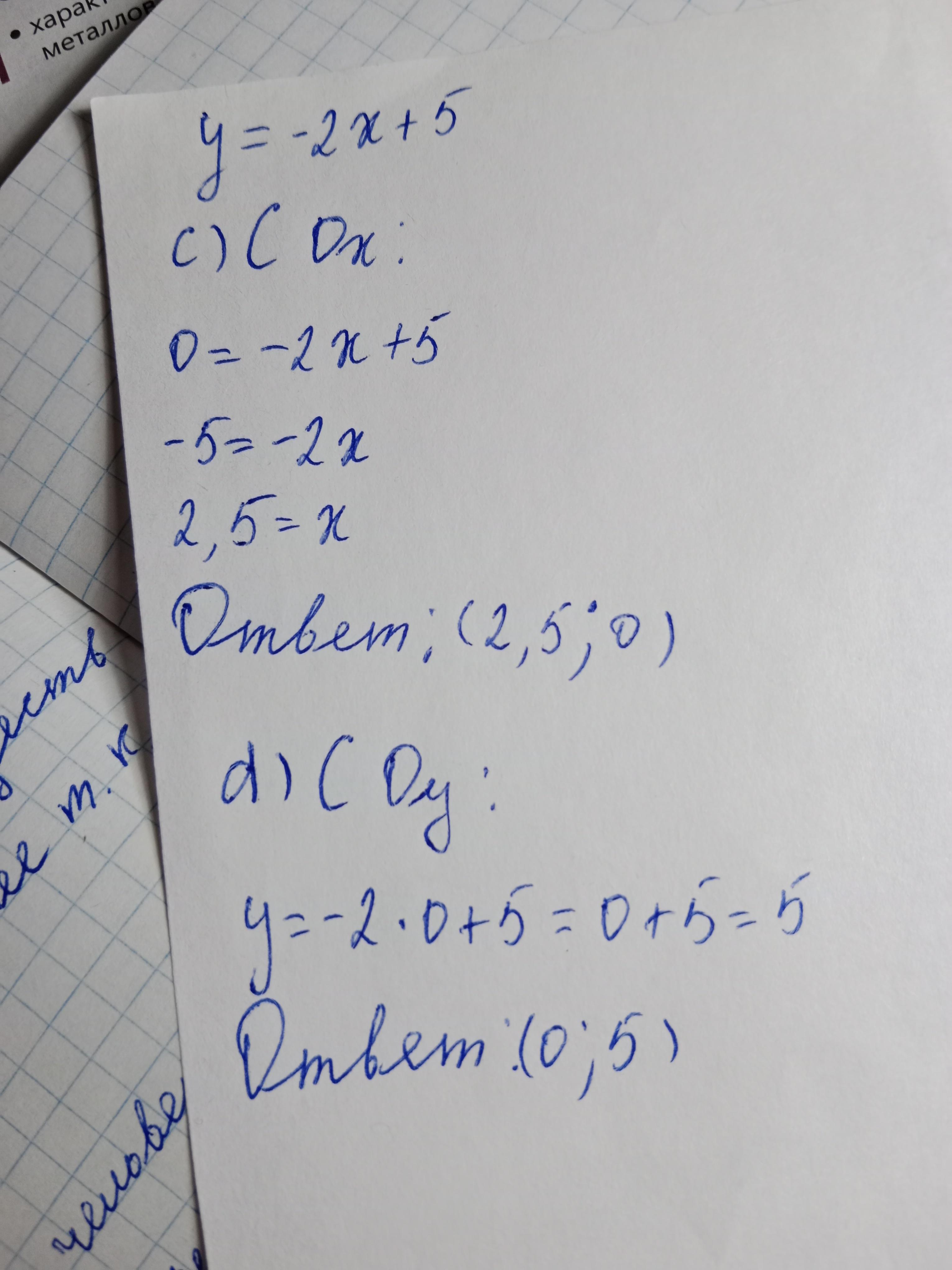 2. Найдите координаты точки пересечения функции у=-2х+5 с осью с) абсцисс. d) ординат [2] [2] Г