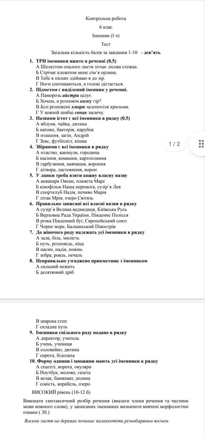 Кр по укр мове. Сделайте пжпж 6 класс даю 20 баллов ( возможно у вас будет 10 )
