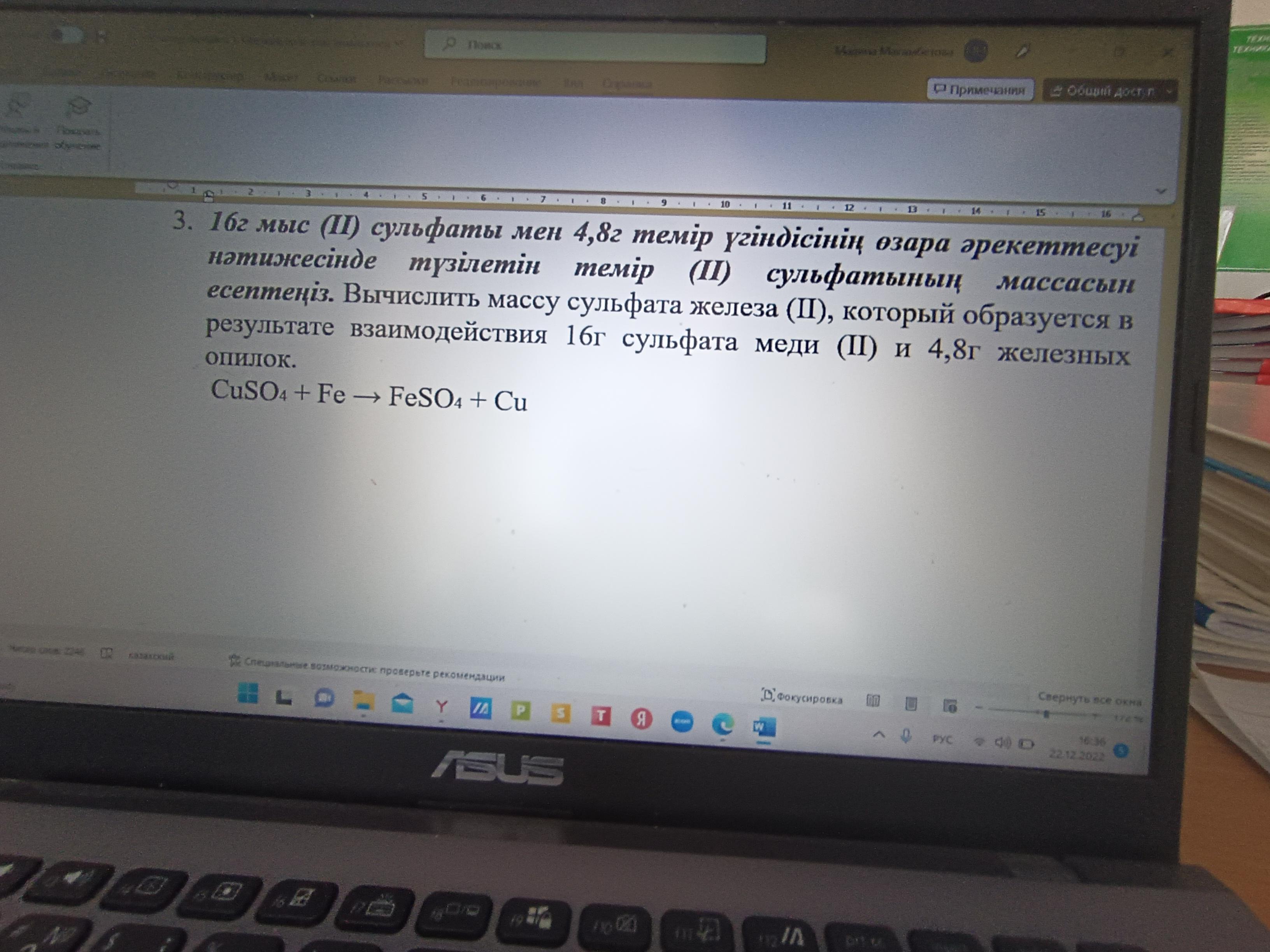 Fe + CuSO4 = FeSO4 + Cu 1 моль 1 моль m(CuSO4) = 16 г n(CuSO4) = 16/(64+32+16*4)=0,1 моль m(Fe) = 4,8 г n(Fe) = 4,8/56=0,086 моль - недостаток m(FeSO4) = 0,086*(56+32+16*4)=13,072 г.