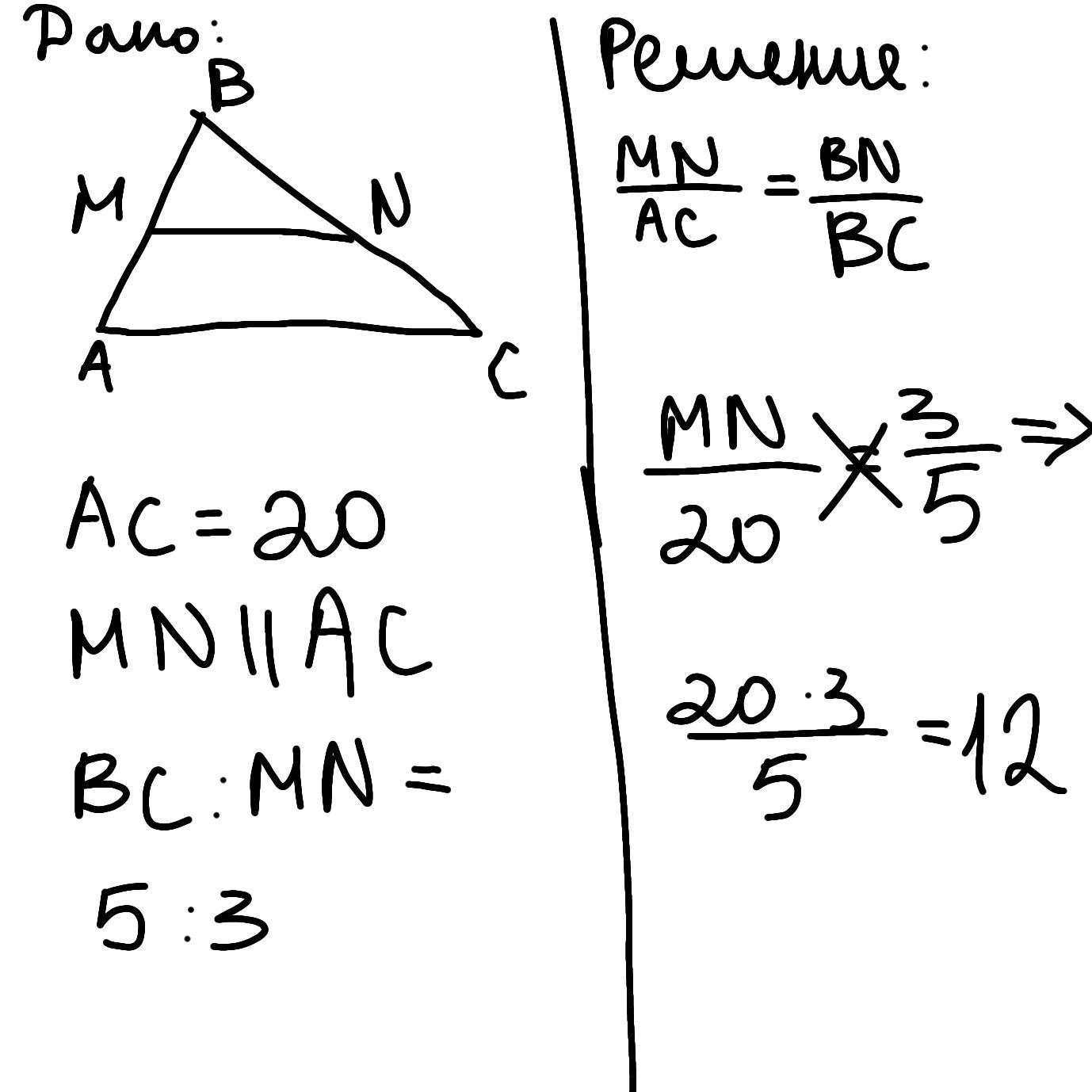 Объяснение: MN относится к АС точно так же, как и BN относится к ВС.