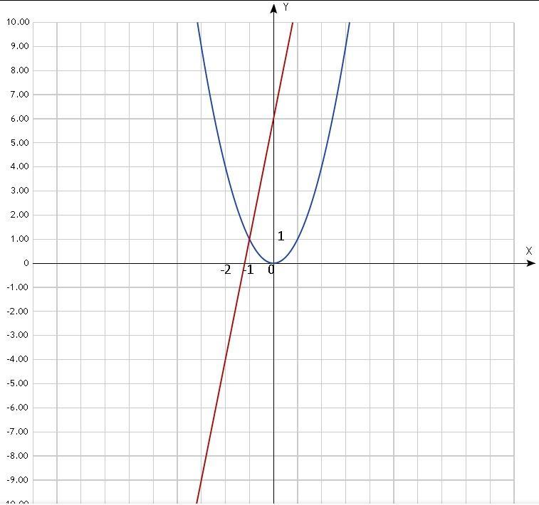 Придать значения х, подставить в уравнение, вычислить у, по вычисленным значениям построить два графика, параболу и прямую линию.
