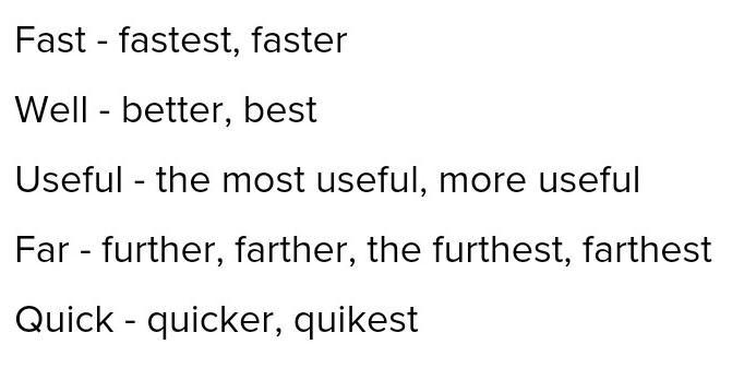 Task 3 Make comparatives and superlatives of the following adjectives:
