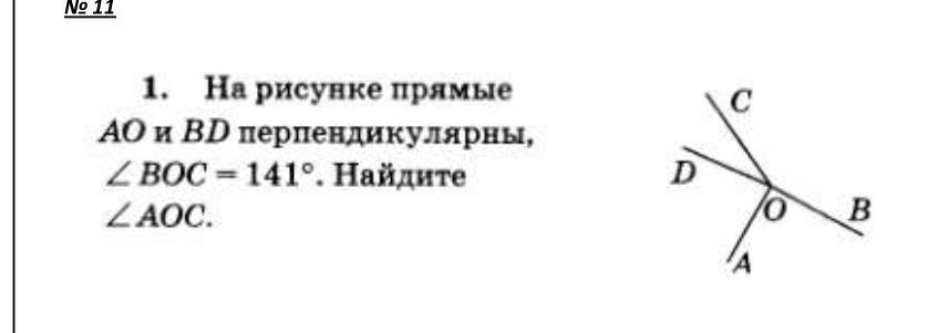 Дано: АО и ВD - перпендикулярны, угол ВОС = 141°.