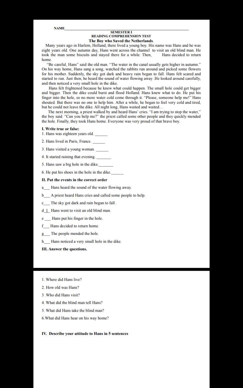 5. I think that Hans acted bravely. It did not stop holding water even at night. His action shows that he was very worried about all the people. Everyone must have thanked him after this act.I respect Hans, because he is brave.