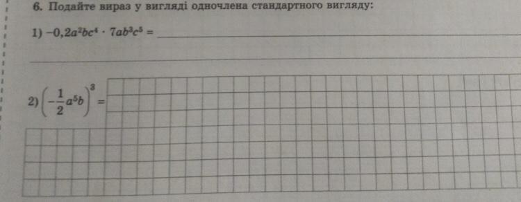 1) -0,2а ²bc⁴ * 7ab³c⁵= -1,4а² bc⁴+⁵ ab³