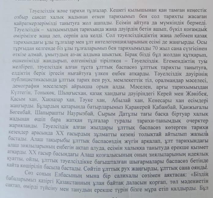 2-тапсырма. Әртүрлі жанрдағы мәтіндерді жазу үшін құрылымын ескере отырып, карапайым жоспар кұрыныз.