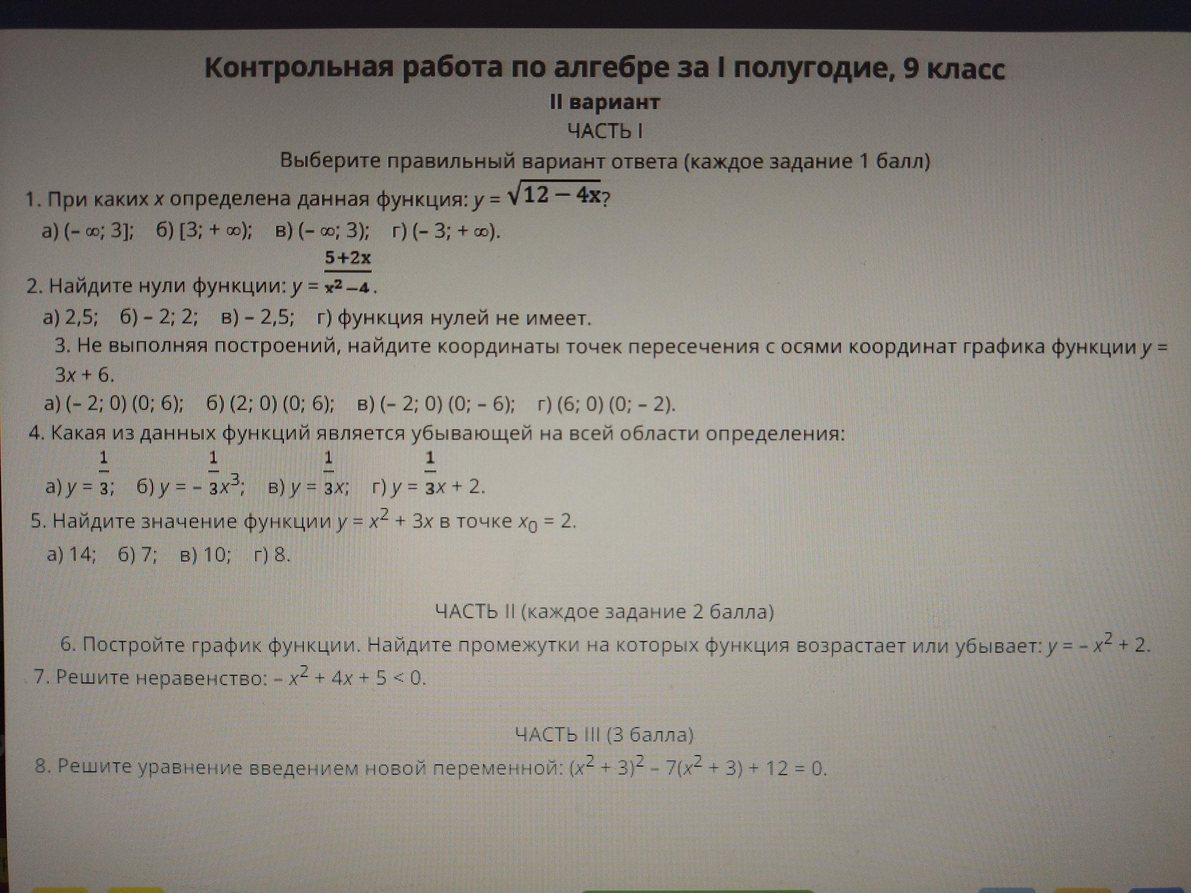 Решить контрольную работу по алгебре 9класс за первое полугодие. ДАЮ МНОГО БАЛЛОВ, СРОЧНО, ПОЖАЛУЙСТА!