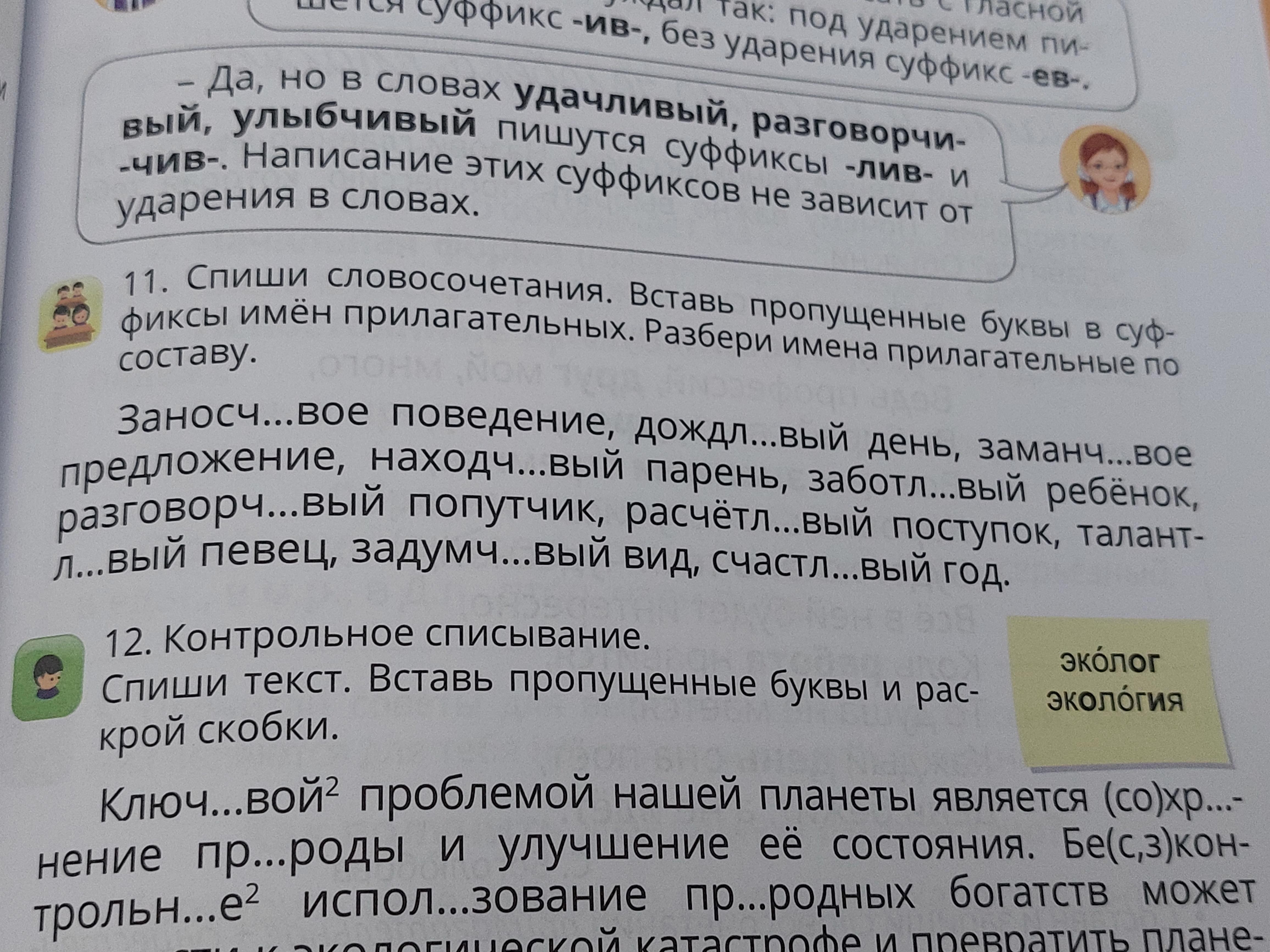 заносчивое поведение, дождливый день, заманчивое предложение, находчивый парень, заботливый ребёнок, разговорчивый попутчик, расчётливый поступок, талантливый певец, задумчивый вид, счастливый год