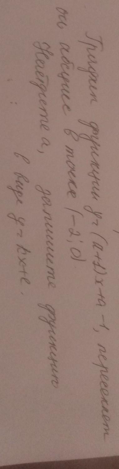 График функции у=(а+1)х+а-1, пересекает ось абсцисс в точке (-2;0) Найдите а, запишите функцию в виде у=кх+с. ДАМ 100 БАЛЛОВ СРОЧНО НАДО ПЖПЖПЖ
