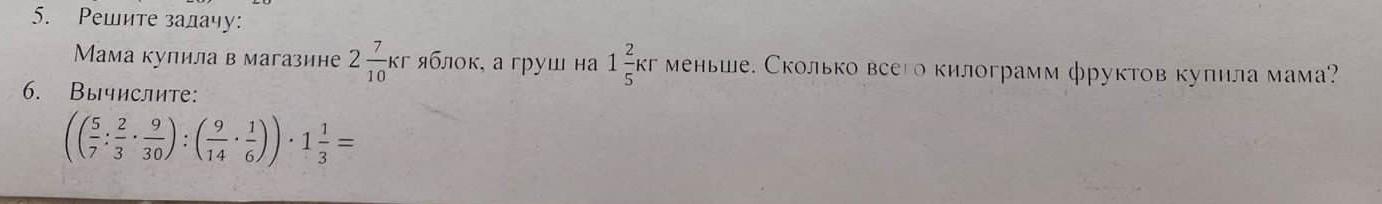 2 7/10+ 1 3/10=4кг фруктов купила мама