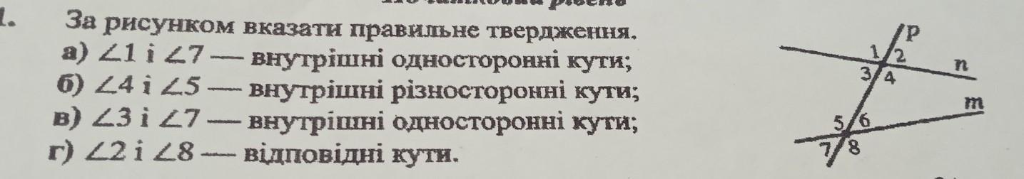 б) < 4 і < 5 - внутрішні різносторонні кути.
