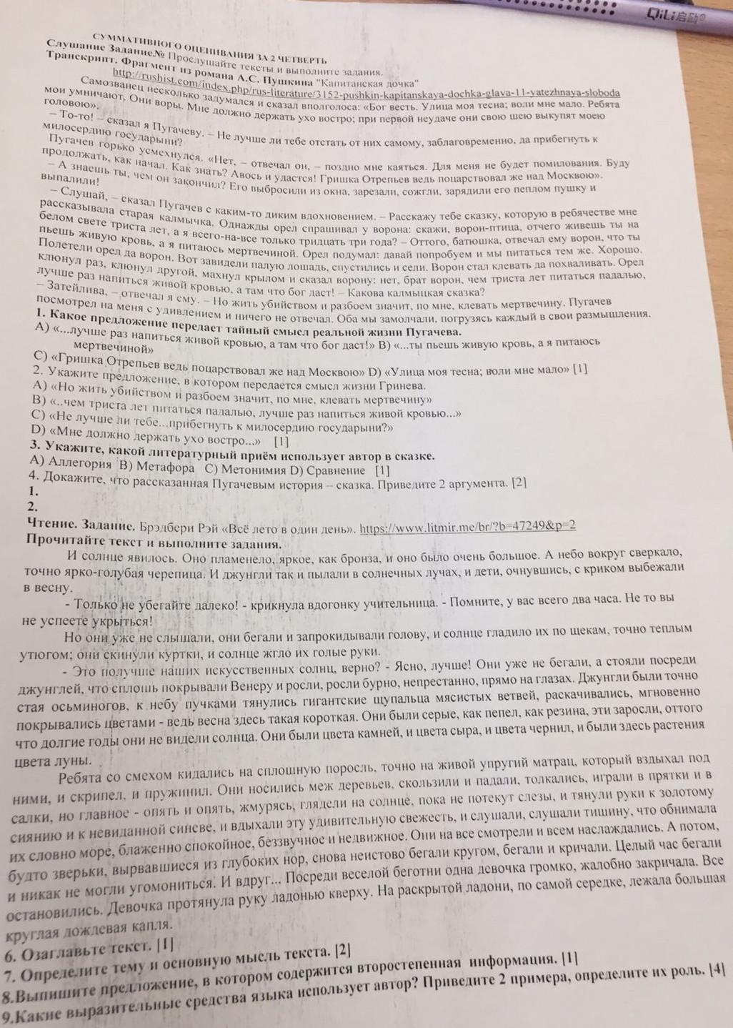 Фрагмент из рамана А.С Пушкина Капитанская дочы 2 Четверть